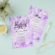 Design de "Programa de Festa de aniversário" elegante com flocos de neve brilhantes de inverno e luzes em roxo com texto personalizado.