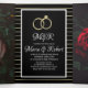 Convites de Casamento Magníficos - Novos Convites Tri-Fold com espaço extra para aquele anúncio especial. Convites de Casamento com Listras em Foil Preto e Simulado