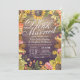 COMA, Beba e Case Cartões de Convite para Celebração de Casamento / Chá de Noiva Templates.- Folhas de Bordo de Outono Elegantes, Abóboras e Girassóis Flores Aquarela em Fundo de Madeira Rústica.
