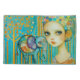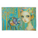 Um elefante estilizado e colorido fica ao lado de uma garota com olhos grandes e um chapéu branco, padronizado. Árvores pontilhadas e faixas verticais vibrantes enchem o fundo com um senso de fantasia e maravilha. Digital Art Photoshop CS5