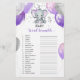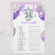Este bebê traça o cartão de chá com elefante roxo e cinza com balões e confete. Você pode personalizar o jogo clicando no botão "personalizar". CHAVE DE RESPOSTA: 1. Fralda, 2. Berço, 3. Bovinos, 4. Garrafa, 5. Pacificador, 6. Gravidez, 7. Fórmula 8. Teddy Bear, 9. Alta Presidente, 10. Patrulheira, 11. Baby Monitor, 12. Rattle, 13. Pó De Bebê, 14. Telefone celular, 15. Bomba de Mama, 16. Cobertura, 17. Assento Do Carro, 18. Chorando, 19. Enfermeiro, 20. Creme de fralda
