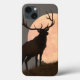 Elevação majestosa dos alces e da Lua cheia de