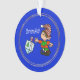 Este ornamento apresenta um elfo bonito com um sonho. No verso, personalize-o com o ano atual ou um nome. Desenhado por Sheila Cicchi, Brownielocks.com. Todos os Direitos Reservados.