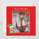 Elfo de Natal moderno e foto personalizada no Cartão de Natal vermelho. Feliz Feriados!