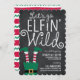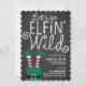 Vamos vai para Elfin Wild com este convite da Festa de Férias de Sarah Hawkins Designs. O design apresenta um fundo de quadro de controle com um elfo bonito no canto.
