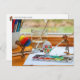 Elfos de bolota decorando ovos de Páscoa - cartão postal engraçado de Páscoa com ovos decorados