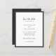 Casamento moderno salve a data com um simples design com seus detalhes de eventos cercados por uma borda fina.