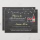 O partido de aposentadoria rústico do quadro convida com garrafa de vinho, vidros & luzes da corda. MUDE SIMPLESMENTE O TEXTO PARA SERIR SEU PARTIDO. Suporte o impressão incluído