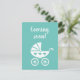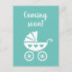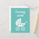 Em breve, cartões de anúncio de gravidez fofinhos com design de carruagem para bebês. Cartaz personalizado para esperar uma nova menina ou um menino. Cor de fundo personalizada com o cilindro de montagem/amortecedor do compartimento. Excelente também para a festa do chá de fraldas. Adicione a sua mensagem adorável no fundo. Modelo de tipografia de pincel elegante.