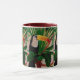 Caneca exótica bonita de um pássaro exótico da floresta húmida de Toucan que descansa em um ramo de árvore. Estes trabalhos de arte e caneca foram criados pelo rick do artista curto.