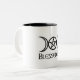 A caneca padrão do café 11oz/chá com deusa tripla e abençoada seja escrita abaixo. Coloração exterior cerâmica branca com escrita interior e preta preta.
