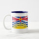Esta caneca à moda tem a bandeira do Columbia Britânica em um lado e no outro, na bandeira canadense e no Columbia Britânica das palavras. O interior é "BC azul." Para mais artigos deste tipo visita: www.zazzle.com/Azorean*. Consulte então a coleção de Canadá.