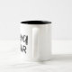 Este copo de café corajoso, preto e branco caracteriza a rotulação original e uma mensagem do divertimento.