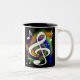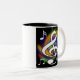 Caneca de café dos melómanos com notas do Clef e da música de triplo