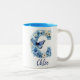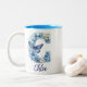 Em Dois Tons Caneca de Café Floral Azul Monogramada de 11 oz