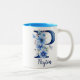 Em Dois Tons Caneca de Café Floral Azul Monogramada de 11 oz