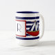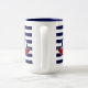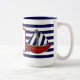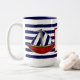 Esta caneca de café é elegante e elegante com veleiros em um marinho e em um fundo listrado branco. Monograma o centro com sua inicial.