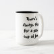 a caneca de café com "lá é sempre hora para um bom copo de Joe." na rotulação preta
