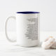 Uma caneca de café de dois tons que caracterizam a ilustração e o poema "enfrentam fora"