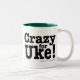 Aprecie sua bebida favorita e mostre-o que seja "louco para UKE" com esta grande caneca de café do desenhista pelo raio do Ukulele!