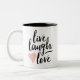 A caneca de café viva moderna do amor do riso criou pelo design colorido Inc. Esta caneca de café moderna e à moda é um presente perfeito para vinte dólares inferiores. O coração bonito da folha da tipografia e de ouro faz-lhe um presente chique que você pode ser orgulhoso dar para fora. Copyright 2016