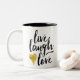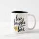 A caneca de café viva moderna do amor do riso criou pelo design colorido Inc. Esta caneca de café moderna e à moda é um presente perfeito para vinte dólares inferiores. O coração bonito da folha da tipografia e de ouro faz-lhe um presente chique que você pode ser orgulhoso dar para fora. Copyright 2016