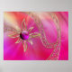 Um fluxo fractal brilhante de amarelo pálido e laranja se transformando em rosa quente, sobreposto com filigrana dourada motif estudada com joias e acentuado com uma suave e profunda pérola roxa cercada por raios solares ouros brilhantes.