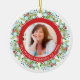 Este ornamento delicado e colorido é perfeito recordar um membro da família durante a época natalícia. Caracteriza uma grinalda bonita, uma mensagem e uma foto. A parte traseira inclui mais detalhes. Este ornamento faz uma lembrança de feltro do coração e uma memória bonita para manter-se para os próximos anos.