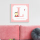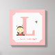 Uma tela doce para decorar um quarto de criança ou um berçário de menina. Design tem uma menina fofa em uma roupa de joaninha com uma joaninha voando. Paleta de cor rosa, vermelha e preta. Personalize com a letra inicial para o nome da garota e o nome do cheio. Faz um presente de chá de fraldas excelente!