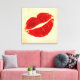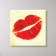 Um grande beijo de batom, lábios vermelhos, a boca fecha a ilustração original do estilo de arte pop num estilo de vintage claro, antiga textura de pergaminho de papel, com um olhar legal e aflita de grunge, faz com que um impressão poster de galeria de declarações contemporâneas, único, na moda e moderno. Excelente para qualquer parede numa maquiagem, salão cosmetólogo. Faz um impacto real neste tamanho grande de formato quadrado de 20"x20".