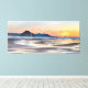 O tema náutico "lona esticada" apresenta uma pintura paisagística de Morro Rock (Baía de Morro, Califórnia), ondas oceânicas, gaivotas, veleiro e pôr do sol colorido. Perfeito para uma casa de praia, aluguel de férias, casa ou negócio com decoração costeira. Arte da KL Stock.