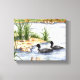 Uma cena pacífica de dois leões na borda de um lago,