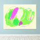 Essa canvas apresenta em seu centro uma descarga de cores fluo - rosa e verde junto com branco - em uma mancha grande e outras menores, cercadas por linhas orgânicas. O fundo é verdadeiro.