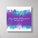 Esta canvas roxa e turquesa divertida e esticada deve ser usada como um livro de convidados de alternativo. Adquira marcadores permanentes em branco, preto, roxo, turquesa, prata e ouro. Peça ao seu convidado que assine o nome ou deixe seus desejos de felicidade ao redor de seus nomes nesta impressão de tela divertida. Um alternativo perfeito do livro de hóspedes que você pode usar para decorar sua nova casa.