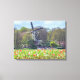 Uma bela vista de um moinho de vento e campos de tulipas nos Países Baixos impressos numa canvas.