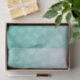 Papel tecidular com o logotipo personalizado em um fundo verde de gradiente claro a verde mais escuro. Modelo fácil de usar. Para ajustar o espaçamento entre as repetições de logotipo, aumente ou diminua o tamanho do azulejo e o tamanho do logotipo ou faça o upload do logotipo com uma margem transparente.