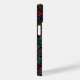 Este iPhone 14 Case de ZoeSPEAK foi projetado no estilo de um saco de embreagem. O cobrir flape do saco é um padrão terrazzo colorido, principalmente cinzentos escuros, mas espalhado por vários pedaços de vermelhos, azuis e verdes. A parte inferior do saco, sob o flape, é de terracota, de cor, com uma ligeira textura de tecido de seda. O fecho do flape é uma curva oval dourada para fora, com um monograma que pode ser personalizado ou apagado. No terrazzo da seda, espalhando-se do oval dourado para os cantos superiores, estão duas bandas de fita de terracota com bordas violetas azuis.