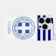 Casaco de braços de Grécia. A casaco de braços de Grécia exibe uma cruz branca sobre uma escutaria azul, cercada por dois galhos de louros. A Constituição não especifica uma tintura para os ramos, o que implica que é correto (isto é, verde). O governo grego utiliza normalmente um design em que os ramos de louros são azuis monocromáticos. Uma versão com folhas de ouro é exibida pelos militares e no padrão presidencial.