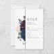 Embrião de água de inverno, borboleta, azul-marinho e florais cor-de-rosa pincelados em fundo branco com modelos pessoais à direita, florais à esquerda. Borgonha atrás.