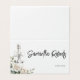 Celebre a noiva ao estilo com esta placa de espaço dobrável "Brunch and Bubble", emblemática "Branca e Branco Elegante". Apresentando maleáveis flores brancas, um belo arco branco, uma garrafa de champanhe, e uma fonte sofisticada de script, este design define o tom para um encontro chique e alegre. Perfeito para um chá diurno cheio de risos, mimosas e memórias. Totalmente personalizável com seus detalhes de evento para torná-lo exclusivamente seu. Ideal para noivas modernas que amam elegância eterno.