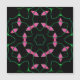 A striking abstract design featuring glowing green geometric forms intertwined with vivid pink petal shapes, set against a deep black background. This kaleidoscopic artwork blends digital symmetry with floral inspiration, creating a bold, modern mandala that feels both organic and futuristic. Perfect as statement wall art, home décor, apparel, or accessories for lovers of vibrant colour, sacred geometry, and contemporary abstract design.