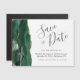 Este elegante cartão magnético de data salta uma cor d'água verde esmeralda, borda agitada com brilho dourado falso. O texto personalizável combina o script de escrita manual de cinzas de carvão, o copperplate e as fontes itálicas em um fundo branco.