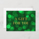 Cartão de Certificado de Presente com as palavras "A Gift For You" em folha de ouro falsa contra um padrão de luz verde esmeralda na frente. Personalize este cartão com seus detalhes substituindo o texto do marcador de posição. Para obter mais opções, como alterar a fonte, o tamanho/cor do texto ou o espaçamento entre letras, clique no botão "Personalizar". *Observe que a Marca d'água do Zazzle que aparece na visualização de zoom NÃO aparecerá no produto impresso final. © Rosewood e Citrus