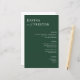 Menu de casamento mínimo contemporâneo com o toque de sotaque com os seus nomes em letra elegante serif bold com "e" em letra moderna manuscrita escrita num fundo verde-esmeralda de tendências. Personalize com os detalhes do seu janto de casamento. O modelo fornece 3 cabeçalho e 3 espaços para texto personalizado. Precisa de mais opções? Por favor, entre em contato comigo, sem custo extra! Este menu pode ser usado para recepção de casamento, janto de ensaio ou qualquer evento.