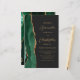 A borda esquerda deste elegante convite de casamento moderno apresenta uma esmeralda verde aquarela agate borda com falsa brilho dourado. O texto personalizável combina o script dourado e as fontes sans serif em um fundo preto de slate. Um design emerald green agate correspondente aparece na parte traseira do cartão.