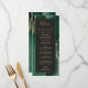 Este elegante cardápio moderno de casamento apresenta uma cor verde esmeralda de água. O texto personalizável combina um script de escrita manual branco de cor dourada com as fontes itálicas e de impressão em fundo preto de ardósia. O verso apresenta um design emerald verde e dourado.