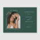 Este belo cartão magnético Save the Date apresenta um elegante estilo minimalista moderno com um estilo limpo e simples de bloqueio de fontes de tipografia serif em forma de arco à volta da fotografia num fundo verde esmeralda para um olhar minimalista e moderno limpo, que é uma bela forma de informar sobre o seu próximo casamento. Anuncie à sua família e amigos que vai casar com esta salva o cartão magnético de data e adicione um toque pessoal com belas fotografias de si e da sua próxima metade. A simplicidade desta design adiciona um toque de elegância ao seu casamento. Funciona bem com muitos temas de casamento e definitivamente um excelente extra para o seu casamento. Simplesmente personalize os nomes e o texto em alguns passos fáceis e personalize o cartão magnético com sua foto do casal feliz. Por favor, note: o texto em forma de arco de "Salvar a Data" e o roteiro elegante de caligrafia de "e" e o texto de "Convite Formal a Seguir" juntamente com as linhas em frente e trás e outros elementos gráficos de trabalho de arte não podem ser editados, movidos ou excluídos. Eles são fixos.