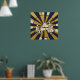 A stunning mid-century inspired portrait of a jazz singer in a glamorous emerald green gown. Featuring a bold sunburst background and vintage microphone, this elegant music poster is a perfect focal point for your lounge, home bar, or creative studio.