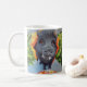Grande porco Emmett do animal de estimação em uma caneca! Você pode pôr o café nele, você pode pôr o chá nele. É uma caneca com um porco preto que veste uma veste alaranjada sassy.