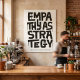 A bold typographic statement about understanding and perspective. “Empathy as Strategy” isn’t decoration — it’s a mindset. Strong, hand-shaped letterforms add a raw, human edge while keeping the composition clean and focused. The reduced black and neutral tones create a timeless, understated look that integrates effortlessly into modern interiors. Designed in a 3:4 format for balanced proportions. Available sizes: 12×16, 15×20, 18×24, 24×32, 30×40 inches. Works as a focal point or within a gallery wall — ideal for living rooms, offices, or creative spaces. Colors may vary slightly due to screen settings. Frame not included.